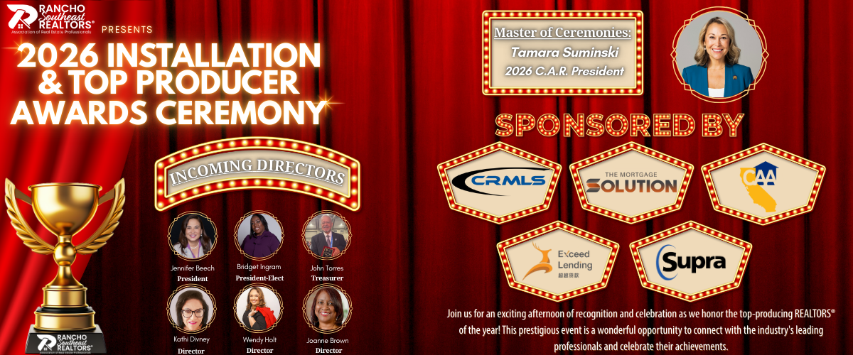 Rancho Southeast REALTORS® proudly invites you to an afternoon dedicated to recognizing excellence, celebrating leadership, and honoring the top-producing REALTORS® of 2025. This signature annual event brings together industry professionals, community partners, and members for an unforgettable celebration of achievement and service.